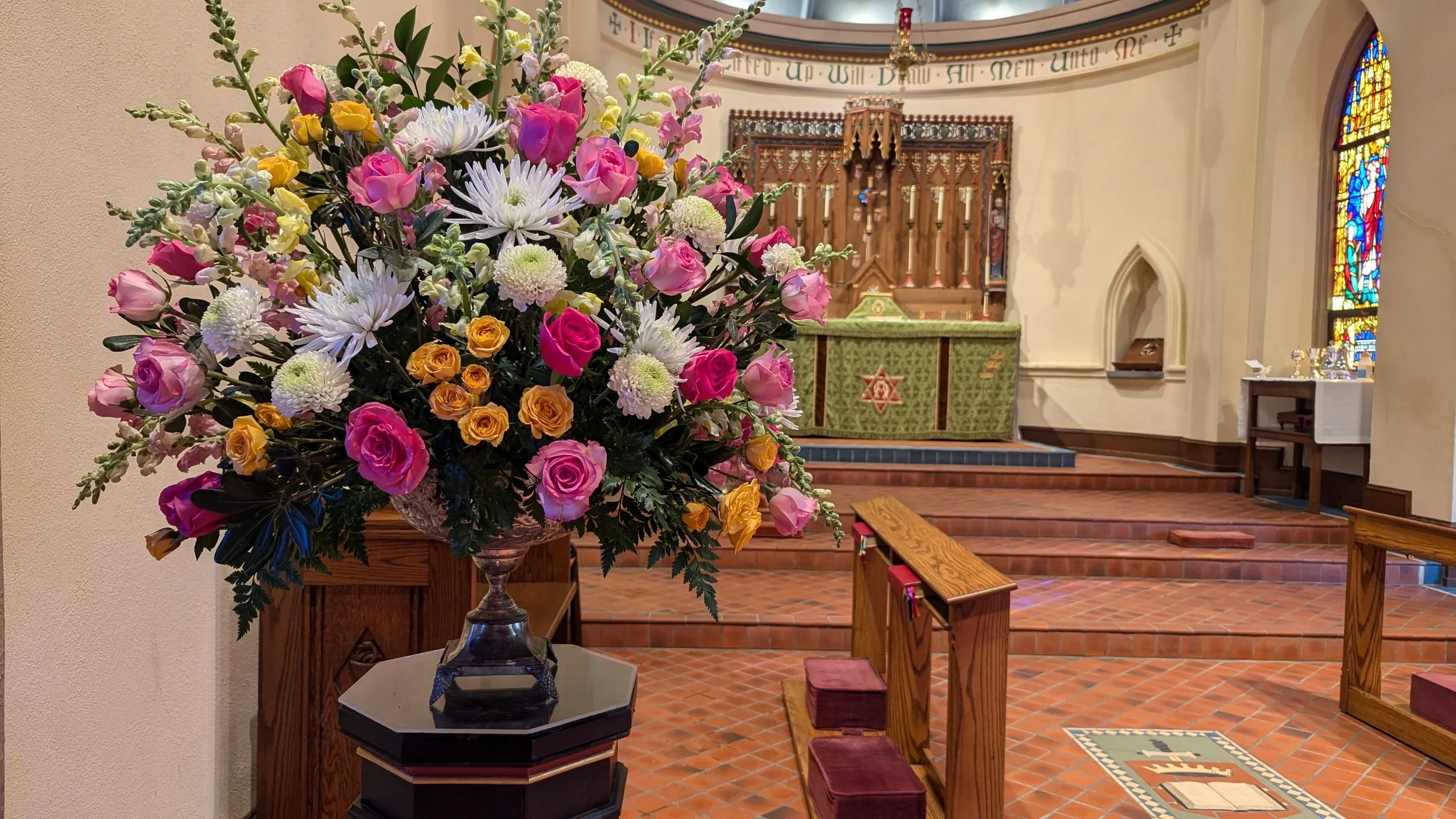Today’s flowers are given to the glory of God, and in memory of our mother Lilla Smerkanich from her loving family Lauren and Nick. Arranged by Kay Johnson