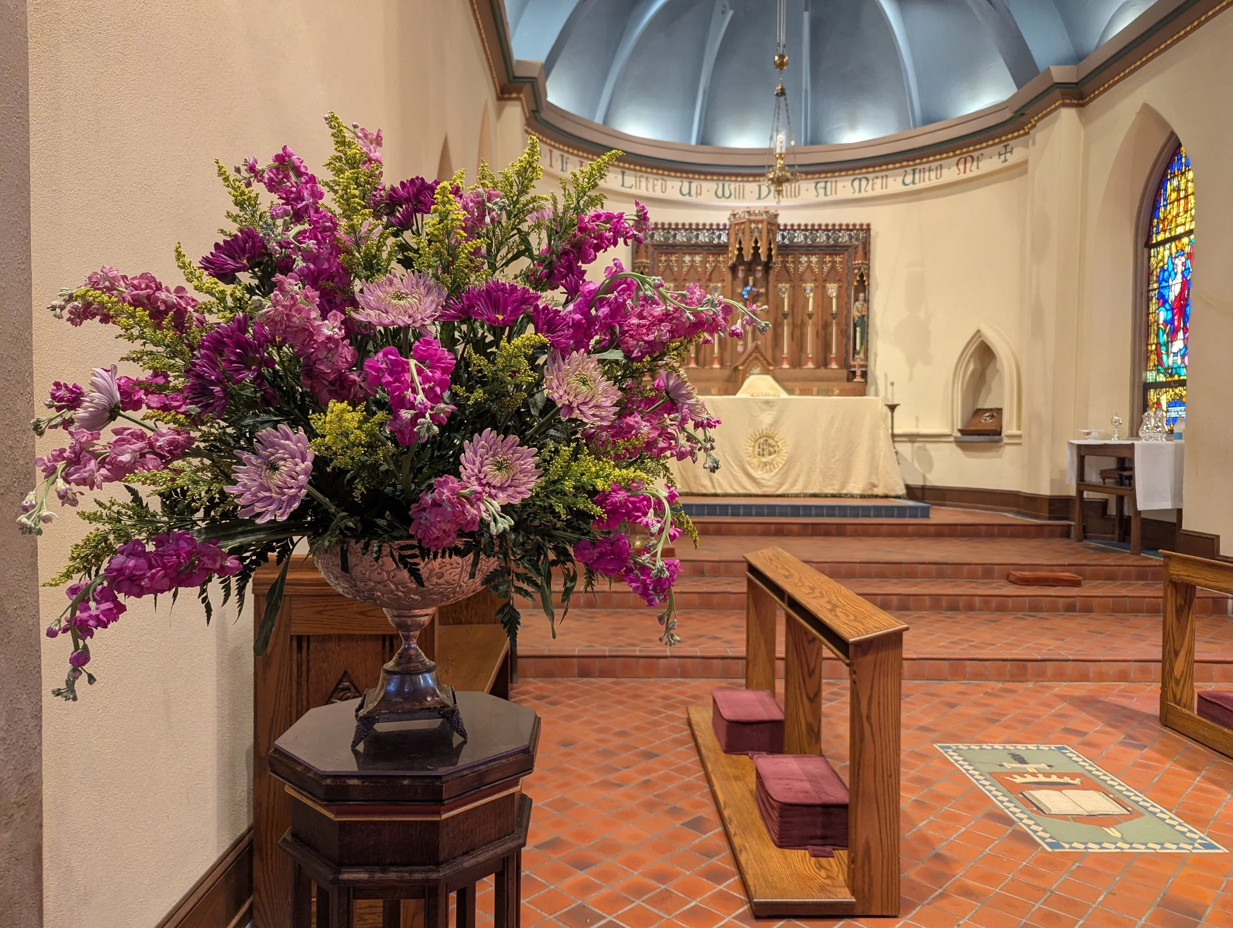Today’s flowers are given to the glory of God, in memory of our mother Lilla Smerkanich from her loving family Lauren and Nick. Arranged by Kay Johnson