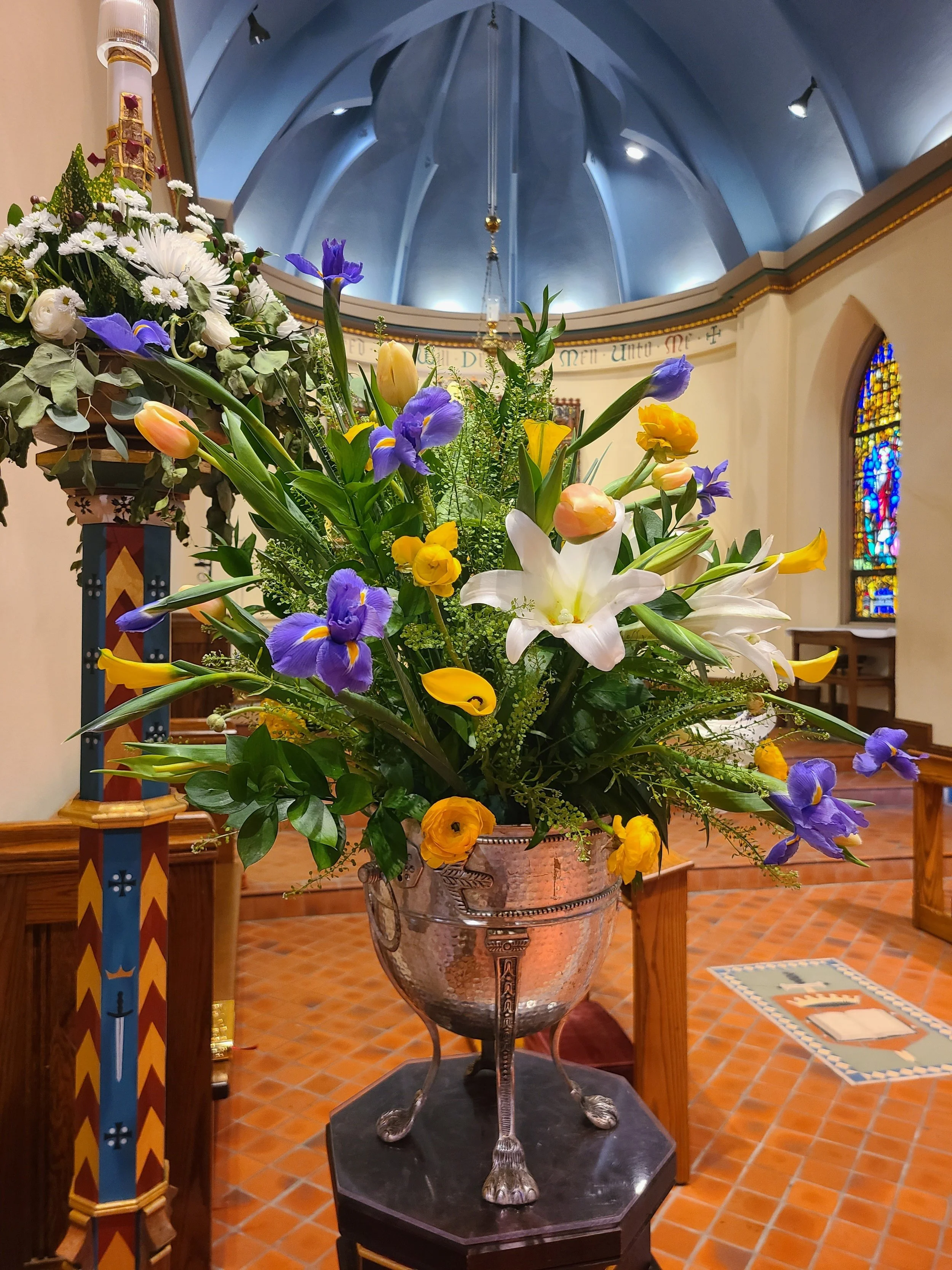 Today’s flowers are given by the Wiemann family to the glory of God, and in loving memory of and grateful thanksgiving for the lives of our parents, Zena and William Benack and Dolores and George Wiemann III. Arranged by Anne Shute